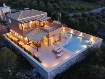This stunning newly constructed villa features three elegant En- Suite bedrooms, a large sitting room with a 75-inch Smart TV and high-speed internet, a spacious, fully equipped kitchen and a terrace with breathtaking sea and mountain views. Every room, as well as the living area, is air-conditioned for maximum comfort. One of the En-Suite bedrooms is on the ground floor and the two others are on the first floor also with their own terrace that you can relax and enjoy the views and sunset.