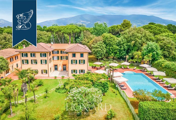 This noble villa, transformed into a luxury hotel, is for sale in Marina di Massa, in Versilia, one of the most renowned coasts of Tuscany. The charming luxury hotel, housed in this magnificent 18-century villa boasts 2,500 sqm of interiors, surrounded by a vast park of approximately 5,500 sqm, with a splendid swimming pool.