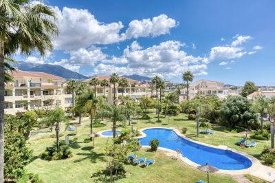 Absolutely stunning and beautifully maintained two-bedroom, two-bathroom second-floor apartment, located just a 12-minute drive from the beautiful beaches of La Cala de Mijas. The property sits within a gated and secure private community, offering fabulous open views across the immaculate community gardens, swimming pool, and surrounding mountains.