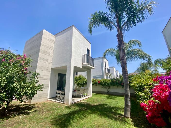 This modern, homely villa has an open plan living area on the ground floor, with double patio doors onto a shaded terrace and the pretty garden. The spacious walled garden has mature plants and trees, including colourful climbing beugonvillia, palm trees and a lemon tree.