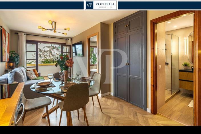 This tastefully renovated one-bedroom apartment ticks all the boxes: modern design, high-quality finishes, and a prime location with beautiful sea views. The bright living room features an open, inviting layout with a fully equipped brand-new kitchen and offers direct access to the spacious terrace – the perfect spot to enjoy breakfast with the sunrise and stunning views of the sea. The bedroom is quietly situated, ensuring restful comfort, while the modern and elegant bathroom is fitted with a stylish walk-in shower. Renovated and furnished with great attention to detail and a refined sense of style, the apartment is move-in ready. The current owner holds a valid tourist rental license, and the property enjoys excellent occupancy rates. The well-maintained residential complex also includes a beautiful communal pool, perfect for relaxing. Whether you're looking for a holiday home, a buy-to-let investment, or a private retreat, this apartment combines comfort, location, and income potential in the best possible way.