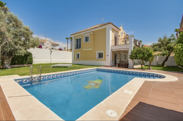 Stunning modern detached villa located within the ONLY gated villa community in La Duquesa. This exclusive property is just a few minutes drive from the wonderful marina of La Duquesa, and all general amenities, and approximately 1.3km (15 minute walk) from the beach and the fabulous El Castillo fishing village which simply has to be visited! The villa offers fabulous views to the mountains and partially to La Duquesa Golf, with complete privacy throughout. Outside you find a large private swimming pool, and well maintained tropical gardens, and the property is built over two levels, briefly comprising; at ground floor level; a spacious open plan living room with fireplace, dining room, modern fully fitted kitchen, guest bedroom with ensuite facilities, and a covered south facing terrace overlooking the private swimming pool and beautiful landscaped gardens. Upstairs are three double bedrooms with two bathrooms, plus another terrace with fabulous views. The property has pre-installed air conditioning, and private parking for two vehicles. This is the perfect property for anyone wishing to be within walking distance of a beautiful beach, Marina and general amenities, yet far enough away to enjoy complete privacy, either as a holiday home or full time residence - CONTACT US NOW!