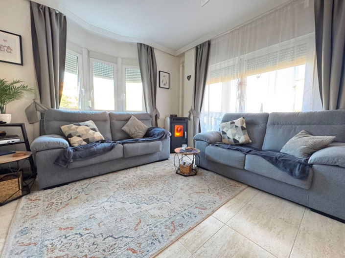 On the second floor of the house you will find a spacious master bedroom, a bathroom with a shower cabin, and a huge terrace where you can enjoy the sun and the view of the mountains all day long.