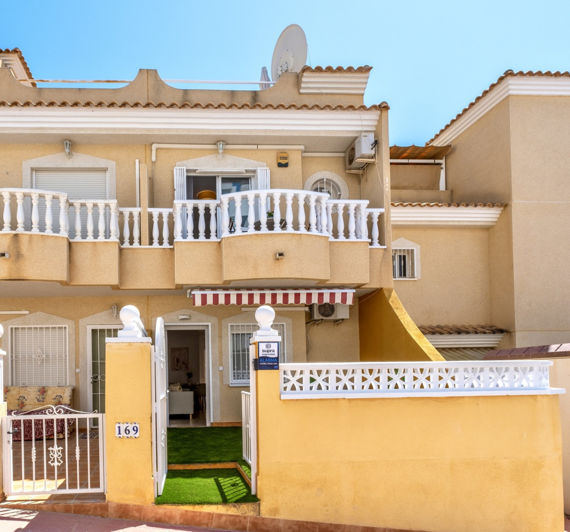 Perfectly located in the heart of Villamartin, this beautifully renovated townhouse offers the ideal combination of comfort, convenience, and Mediterranean charm. With 2 spacious bedrooms and 2 modern bathrooms, it's perfectly suited for year-round living, a holiday retreat, or a rental investment. The property boasts fantastic outdoor spaces, including a private roof terrace and two ground floor terraces facing different directions — perfect for soaking up the sun or enjoying al fresco dining at any time of day. Set within a well-kept community, residents can relax by the attractive communal pool, surrounded by lush gardens. All essential amenities are within walking distance, including popular commercial centres, Villamartin Golf Course, a wide selection of restaurants, shops, and services, placing you right in the heart of everything while still offering a peaceful, residential setting.