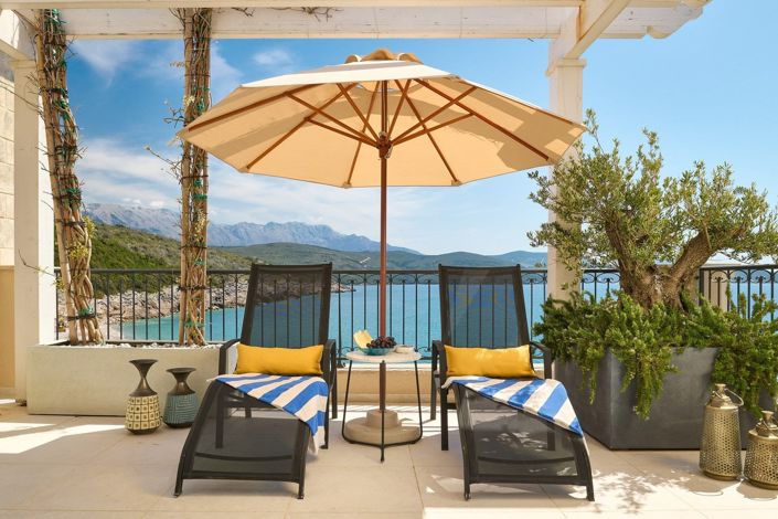Exclusive two-bedroom penthouse apartment of 161 m2 on the first line to the sea, managed by the Chedi 5* hotel, Lustica Bay.
