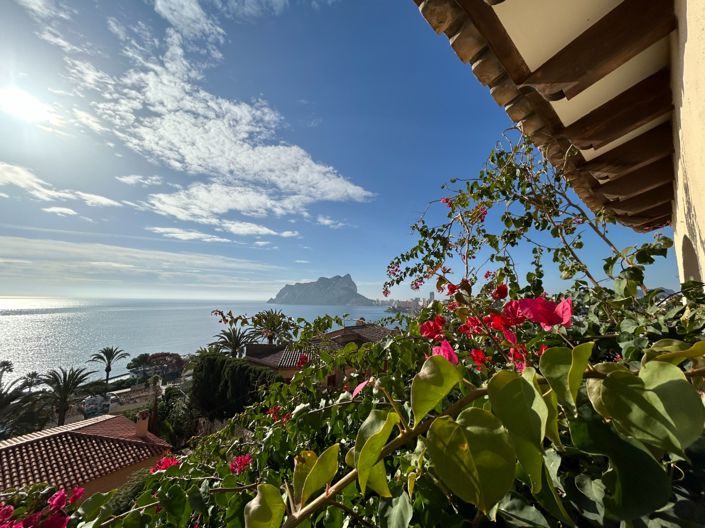 Spectacular villa on the coast of Benissa just five minutes from the sea and overlooking the Peñón de Ifach. The house, distributed over three floors, consists of a main house and a guest house. On the first floor we find a large living-dining room connected to the open kitchen, two bedrooms, two bathrooms and access to the room on the upper floor which also has its own bathroom. On the ground floor of the house we find a complete guest apartment with a living-dining room, kitchen, two bedrooms and two bathrooms. Each floor has a porch from which to enjoy the wonderful views and the Mediterranean light. The pool and garden area is wonderful, with a solarium, barbecue and gazebo. An unbeatable place to enjoy the Costa Blanca.