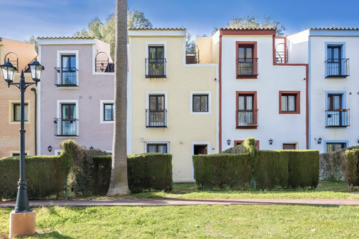 Fabulous three bedroom townhouse situated within a picturesque development just 800 metres (11 minutes walk) from the beach and several beach front restaurants. The house offers a large private garden and patio area with plenty of room for a table and chairs - ideal for outdoor dining, as well as space for several sun loungers. Built over three levels, the ground floor comprises of a bright and spacious living room with a dining area and a separate fully fitted kitchen. The first floor has two double bedrooms and a family bathroom whilst on the second level you find the master bedroom and en suite bathroom, with access to the very private roof terrace where there is plenty of room for two sun loungers to enjoy the sunshine in complete privacy. This property is ready to move into and is perfect for anyone wishing to live life without a car!