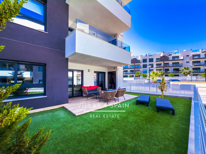 Modern contemporary apartment in the heart of Villamartín, Orihuela Costa, built in 2024, this premium residence is ideal for year-round living or as a investment with strong rental potential. Boasting 2 bedrooms and 2 bathrooms, the home showcases cutting-edge design and top-tier finishes. Its open-plan living and dining area flows seamlessly into a generous 50 m² private garden, perfect for soaking up the sun, Positioned on a corner plot