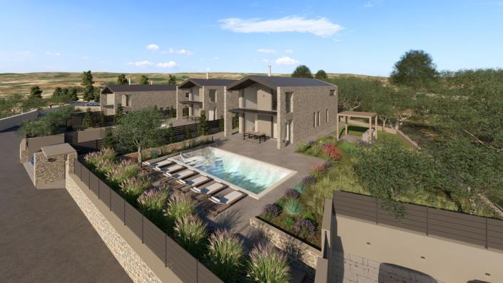 Outdoors, each home features its own private 24?m² pool, BBQ area, landscaped courtyard, shaded pergolas, and two private parking spaces—ideal for relaxing or entertaining under the Cretan sun.