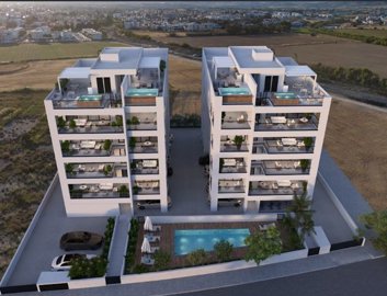 The project is located in the Livadia area of Larnaca, within a few minutes drive to the sea and beach and to the main tourist area with a plethora of restaurants, cafes, pubs, hotels, bus stops and other services. Larnaca Airport is just 20 Minutes’ drive from the project and is just 9 Minutes to Finikoudes Beach. There are 2 apartment blocks housing a total of twenty two 1, 2 & 3 bedroom apartments and penthouses. The 2 Bedroom penthouses each have a roof terrace and each of the 3 Bedroom penthouses come with a private roof terrace and a swimming pool. The complex also has a communal swimming pool and a gym.