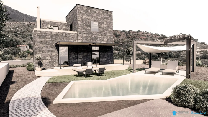 This two-storey villa is being built with local stone and premium natural materials, blending traditional Cretan architecture with modern comfort. It includes three bedrooms, two bathrooms, and a spacious open-plan kitchen and living area. The property will also feature a private swimming pool, perfect for relaxing in complete privacy.