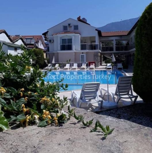 Located within one of Hisaronu’s most sought-after complexes, this well-maintained end apartment boasts a superb position and excellent outdoor space, featuring two private terrace balconies—one overlooking the inviting communal pool and the other offering peaceful garden views.