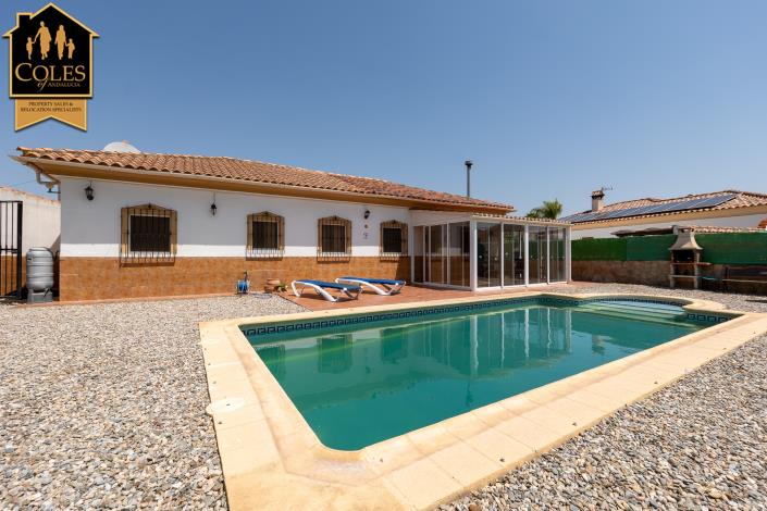 This stunning 4 bedroom 2 bathroom detached villa is located in the desirable La Perla area of Arboleas, boasting a private pool and captivating mountain views. Situated just a 15-minute walk from the village centre, the villa enjoys a peaceful setting on a residents-only road along the scenic rambla front, ensuring both privacy and convenience.