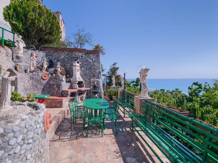 There are three terraced gardens all with sea views along with 1500 sq mtrs of land which leads to the stream at the foot of the hill.