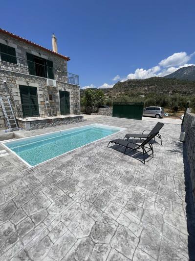 Beautiful 100.8?m² stone house with 36.36?m² basement, just 5 minutes from both Stoupa’s main beach and Kalogria. The property features 2 bedrooms, 2 bathrooms, a fully equipped kitchen, a cozy living room, and a 350?m² garden with private swimming pool. Recently furnished, with A/C in all rooms, oil central heating, and a spare water tank. Ideal for year-round living or holiday use.
