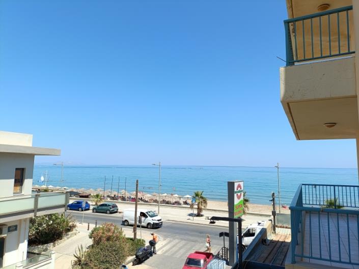 The property was built in 2000 but was fully renovated in 2021. It features a spacious bedroom, an open-plan living room with kitchen, a modern bathroom with underfloor heating, and a comfortable balcony with sea view. The apartment is equipped with air conditioning units, a solar water heater, awnings, and also comes fully furnished with electrical appliances, making it ready for immediate occupancy or rental. Additionally, a shared parking area is available.