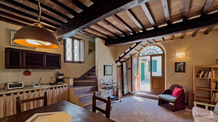 In a period building in the heart of Cetona, a charming one-bedroom apartment on two levels is offered for sale at ground floor level. Tucked away in a quiet corner of Cetona’s historic centre, just a short stroll from the main piazza and local amenities, this elegant one-bedroom apartment arranged over two levels is situated on the ground floor of a characterful period building. Recently renovated with great care and refined taste, the flat beautifully combines authentic Tuscan features—such as exposed wooden beams, original terracotta flooring and handcrafted wooden window frames—with modern comfort and thoughtful spatial design. The result is a warm, inviting atmosphere that retains all the charm of the region’s architectural heritage. The ground floor hosts a welcoming living space with a dining area and open-plan kitchen. A graceful terracotta staircase leads to the upper floor, where a cosy double bedroom with sloped ceilings and a light-filled, contemporary bathroom offer a private and restful retreat. Thanks to its excellent location in the heart of the village, just moments from shops, cafés and cultural venues, this residence is ideal for those seeking a peaceful second home in Tuscany to enjoy on weekends and holidays. It also presents a compelling investment opportunity for short-term holiday rentals, responding to the growing demand for stylish accommodation in Tuscany’s most charming hill towns. An intimate and beautifully finished home, where one can savour the timeless spirit of Tuscany in an authentic, well-connected setting. Apolloni & Blom Real Estate Agency Fee set at € 5000 + VAT flat rate PROPERTY Ref: CET3318Location: Cetona, Province: Siena, Region: TuscanyType: 50 sq m/538 sq ft apartment on two-levels, on the ground and first floorConditions: excellentLayout: Ground Floor: kitchen/dining area, small utility room; First Floor: 1 bedroom, 1 bathroomDistance from services: on footDistance from main airports: Perugia 70 km, Florence 150 km, Rome Fiumicino 184 kmUtilities: Fixed telephone network: available; Internet: available; Heating: methane; Water: mains city supply; Electricity: available; Water waste: mains city connectionThe property is owned by a private individual. The location, for privacy, is approximate. Please note all measurements cited are approximateEnergy Efficiency Rating: GApolloni & Blom RE conducts technical due diligence with the owner's technician to have a full report on each property's urban and cadastral state of the art. The due diligence may be requested by clients showing a strong interest in the property