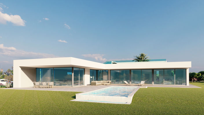 The initial design offer a clean contemporary single level villa with an open plan lounge / dining area / kitchen flowing seamlessly onto a south facing sun terrace, perfect for indoor outdoor living and making the most of the panoramic views.