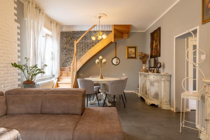 The house is disposed on two levels plus accessory rooms and is composed as follows: on the mezzanine floor, an elegant entrance hall, a bright living room, a kitchen, a double bedroom and a bathroom. An internal staircase leads to the first floor, with a new exposed roof, a study, a double bedroom, a large living room with fireplace and terrace, a double bedroom with exposed beams and a bathroom. In addition, in the basement, there is a large storage room and a laundry room.