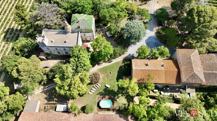 Nestled in the heart of France's largest vineyard, this historic wine estate is a true gem. Built in 1830 by the Duke of Gascony as a hunting lodge, the château, imbued with elegance and nobility, has been expanded over the decades to become this majestic building of character, surrounded by its stone-walled park and numerous outbuildings. The château: With a living space of 521 m², this mansion seduces with its refined architecture and carefully preserved period features: glazed tile roof, monumental stone staircase, marble fireplaces, French parquet floors, mosaic floors, and even a chapel integrated into the house. It includes 2 reception rooms, 11 bedrooms, 5 bathrooms, and a vast basement converted into a cellar, ideal for wine enthusiasts or lovers of places steeped in history. The outbuildings: Three independent dwellings of 95 m², 95 m² and 70 m² complete the complex two are currently rented out year-round, the third used as a seasonal gîte. The former hunters' room, the former stables and a former winemaking cellar of 660 m² on the ground reinforce the unique character of this property. The vineyard: The estate extends over approximately 56 ha in one piece, including: 44.8 ha of vines in production, 4 ha uprooted to replant, 7 ha of land and park. The 30-hectare vineyard, fully irrigated, is planted with red and white grape varieties: Merlot, Carignan, Grenache, Syrah, Cabernet Franc, Cabernet Sauvignon, Sauvignon, and Chardonnay. The wines are produced under the Igp Pays d'Oc appellation, with the Chardonnays in white and the Cabernet Sauvignon in red. The harvest is currently delivered to a cooperative winery, but the on-site facilities would allow for the revival of winemaking activities in a private cellar. A rare location, combining architectural prestige, a privileged natural setting, and a complete wine production tool. The whole offers a perfect balance between a charming residence, rental income, and wine-growing potential. Complete file on request. A unique opportunity for an enlightened amateur or a large-scale project. Information on the risks to which this property is exposed is available on the Georisques website: Price including tax and fees payable by the seller including tax