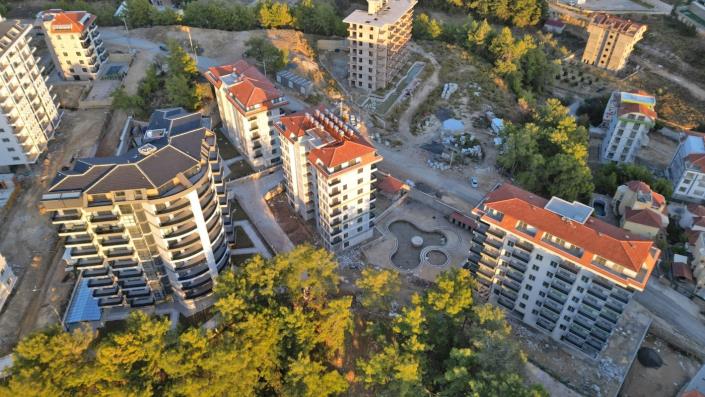 Brand-new apartments are located within 2 km from the sandy beach, 26 km from Alanya center, 69 km to Alanya-Gazipasa Airport, and 102 km to Antalya Airport. The modern apartments are within walking distance from all local and modern amenities like cafes, restaurants, markets, pharmacies, schools, parks, and more.
