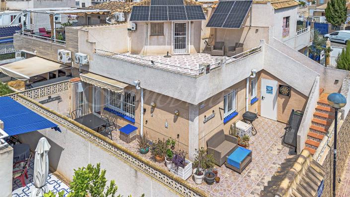 Enjoy a private tiled garden, a sunny roof solarium for relaxing or entertaining, and a versatile bonus room ideal for guests or storage. Set within a peaceful community with a lovely communal pool, it’s just a short stroll from Torrevieja’s popular Habaneras Shopping Centre and all local amenities.