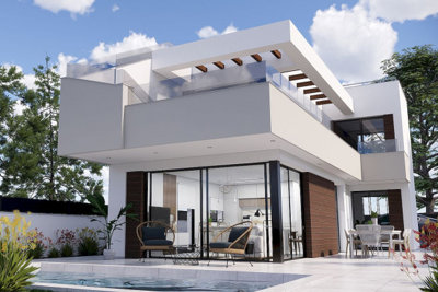 New modern designed villas 100m from the golf course located in a sunny south east position with open fields, golf and sea views.