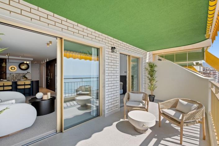 A spacious terrace offering front-row views of the sea and Fuengirola’s vibrant Paseo Marítimo