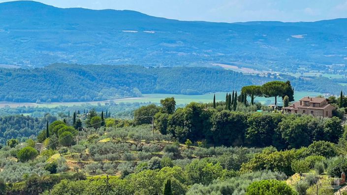On the second floor of a historic building with open views of the countryside, charecteristic and very bright apartment for sale in Città della Pieve. Set within the historic centre of Città della Pieve, on the top floor of an elegant 19th-century palazzo, this 64-sqm apartment offers an intimate and refined retreat with sweeping views over the Umbrian countryside. It retains the charm of tradition with terracotta flooring in the living areas and exposed beams, enhanced by contemporary touches such as oak parquet in the bedrooms and double-glazed wooden windows. The layout is both practical and inviting: a bright living room with dining area and kitchen opens towards the surrounding landscape, while the sleeping quarters comprise a master bedroom, a second room that can serve as a single bedroom or study, and a well-appointed bathroom. Its corner position within the building ensures dual exposure, filling the interiors with natural light and offering picturesque views. A home that perfectly blends character and functionality, within walking distance of all amenities, it is ideal both as a permanent residence and as a second home for those wishing to embrace the authentic atmosphere of an Umbrian hill town while enjoying the privilege of a unique countryside outlook. PROPERTY Ref: CDP3329Location: Città della Pieve, Provincia: Perugia, Regione: Umbria Type: 64 sq m/645 sq ft second-floor apartment, corner position of an historic palaceYear of construction: 1800Conditions: goodLayout: Second Floor: living room with kitchen, 1 double bedroom, 1 single bedroom/study, 1 bathroomDistance from services: walking distanceDistance from main airports: Perugia 50km, Florence 110 km, Rome Ciampino 160 kmUtilities: Fixed telephone network: available; Internet: available; Heating: methane; Water: mains city supply; Electricity: available; Water waste: mains city connectionThe property is owned by a private individual. The location, for privacy, is approximate. Please note all measurements cited are approximateEnergy Efficiency Rating: GApolloni & Blom RE conducts technical due diligence with the owner's technician to have a full report on each property's urban and cadastral state of the art. The due diligence may be requested by clients showing a strong interest in the property