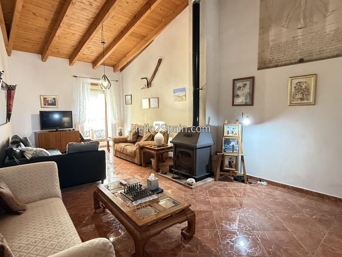 Sitting room is a WOW room, patio door to the front elevation with a Juliette balcony, freestanding wood burner, high vaulted ceilings, stairs to the snug and a hot and cold air conditioning unit.