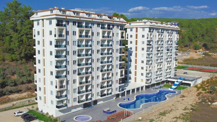 This high-end development consists of 9-storey 2 buildings with 1 and 2 bedrooms, in a total of 180 apartments. This property has a perfect holiday concept with rich social facilities such as indoor and outdoor swimming pool, aqua park, Turkish bath, Spa centre, sauna, steam room, fitness centre, relax room, cinema, restaurant, library, café&bar, mini-golf, tennis court, basketball and volleyball courts, kid’s playground, game room, free wireless, 24-hour security camera system and generator for electric cuts. The caretaker service will be also provided to the residents.