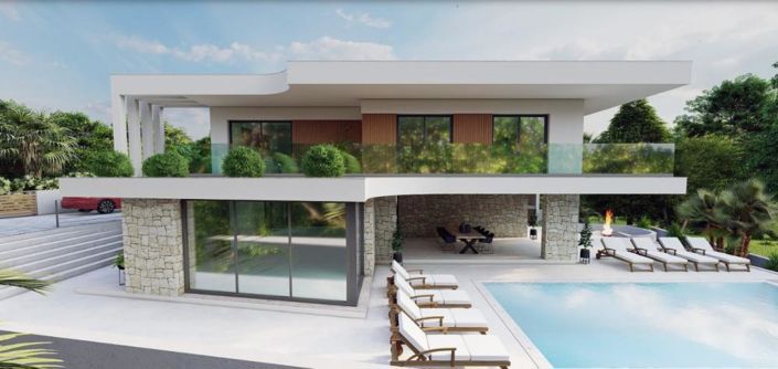 Total surface of villa will be 277 sq.m. land plot is 632 sq.m.The villa will be built in 2022 in a contemporary construction style to accommodate a maximum of 8 people, and it consists of a ground floor and an upper floorThe villa is fully air-conditioned, and on the ground floor, you will relax in the living room, which consists of two sofas, an armchair, a TV, and a coffee table. Near the living room, there is also a modern, high-gloss kitchen, with a bar and 4 bar stools, where you will happily prepare delicious meals for family and friends. There is also a dining room with a dining table for 8 people, next to which there are stairs leading to the upper floor, plus one bedroom with a double bed and an en suite bathroom with a shower cabin.