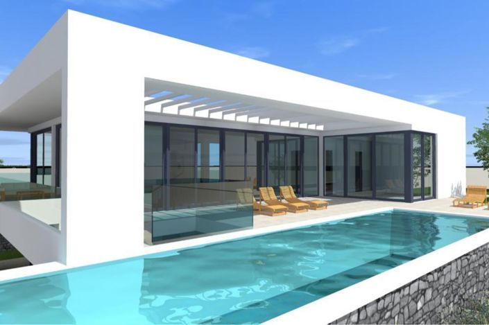 Every building has its own infinity pool with beautiful seaview. The swimming pool is surrounded with big terrace, outside in the garden there is a summer kitchen and greenery.