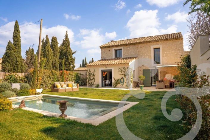 Outside, an intimate 300 m² garden offers a true haven of peace, featuring a 7 x 3.5 meter heated swimming pool, perfect for enjoying beautiful sunny days with an exceptional panorama of the Alpilles.