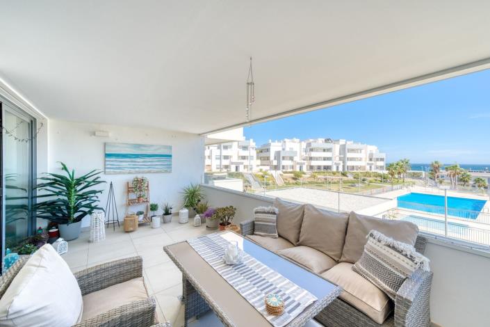 Set within a stylish modern development completed just five years ago, this beautifully presented first-floor apartment combines contemporary design with a relaxed Mediterranean ambiance. Ideally positioned just west of Estepona, it enjoys sweeping views across the sea and the dramatic backdrop of the Sierra Bermeja mountains.