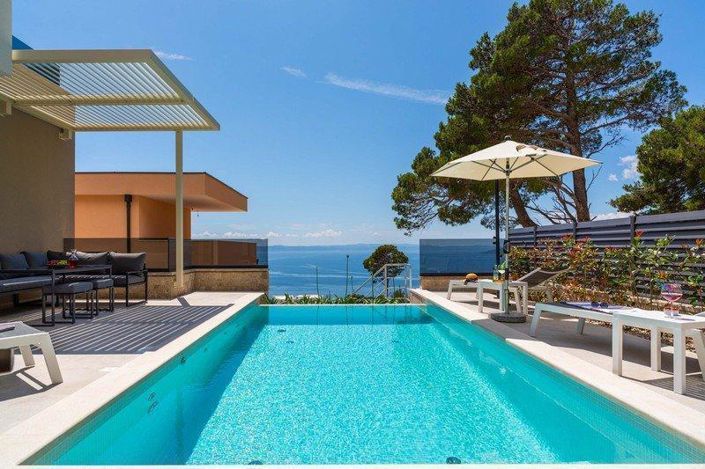 A modern semi-detached villa in an excellent location in the Veliko Brdo area of ??Makarska. Located in a quiet neighborhood with new luxury villas in the area.