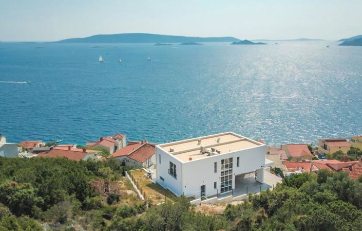 The elegant contemporary villa is located in a small, quiet place on the island of Ciovo just 100 meters from the sea.