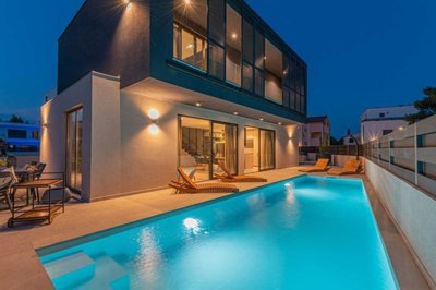 Discover this captivating villa, an exquisite blend of contemporary design and opulence, nestled in a charming tourist town merely 3 km from the heart of Vodice.