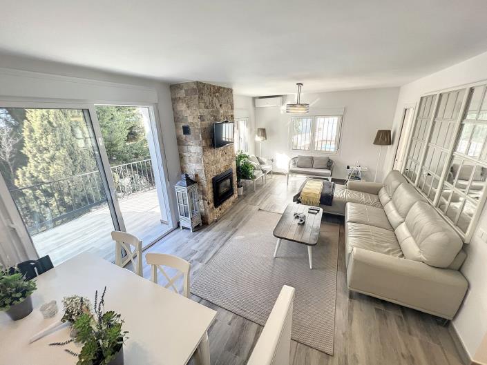 fireplace and ample space for relaxing and entertaining. The living area also offers access to a large terrace