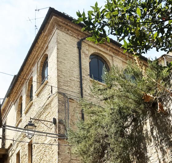 Continuing up the alley, we find the large main door leading to the stone and terracotta entrance hall. A double staircase leads to the main floor, where we can admire the large living room of approximately 70 square meters, divided into two spaces by a large central segmental arch. The entrance to the first room, the living room, features a beautiful 16th-century stone fireplace, framed, in a perfect stylistic combination, by the refined suspended staircase. Passing through the arch, one enters the most striking part of the hall: the gallery, composed of five round arched windows. Each arch has been enclosed with stylistically coherent and undeniably beautiful hand-crafted iron windows, creating a single, large, and bright space thanks to the available natural light, so rare in historic city centers. The hall, undoubtedly the most evocative and charming room in the house, offers warm and welcoming spaces for socializing, where every detail tells an ancient story. Like the stunning 14th-century terracotta tile floor, which blends seamlessly with a refined perimeter composition of white Maiella stone.
