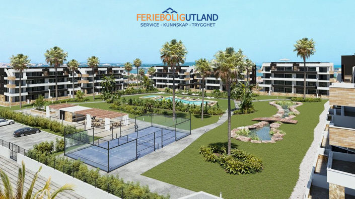 New residential complex with 120 fully furnished apartments, each with 2 bedrooms and 2 bathrooms, just 3 km from Torrevieja and close to shops and beaches.