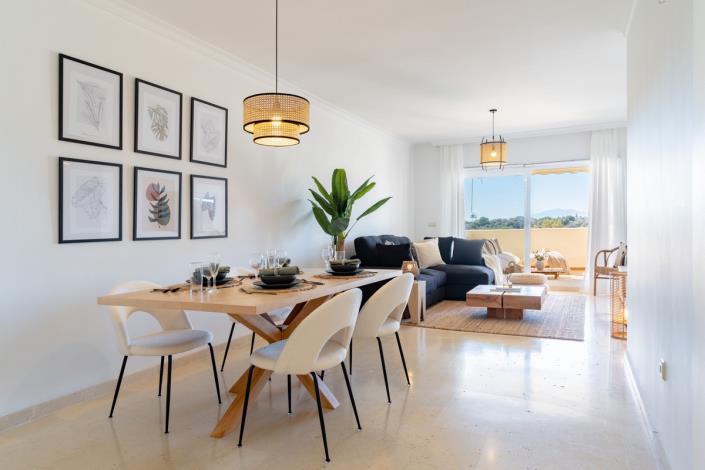 Located in the exclusive gated community of Santa Maria Green Hills. It features a large living room with access to a generous terrace, enjoying open and lateral sea views. The community offers six swimming pools, including one indoor heated, as well as private underground parking. Ideally situated just 5 minutes from the beach, 10 minutes from Marbella, and 30 minutes from Málaga Airport. In the surrounding area you'll find a variety of shops and restaurants, along with family-friendly attractions such as adventure parks and outdoor activities — perfect for both relaxation and fun.