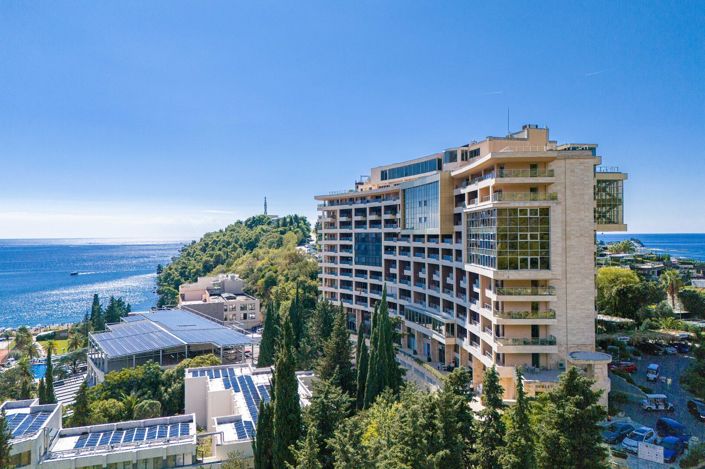 One-bedroom, exclusively designer furnished apartment of 54 m², with sea view, within the Harmony building in Becici .