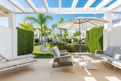 This exclusive development is set within 3,300 m² of lush tropical gardens, complete with a large community swimming pool, sun deck, and fully equipped gym. The tranquil atmosphere blends perfectly with the modern architectural lines and natural materials of the home, creating an oasis of calm just minutes from the vibrant Costa del Sol lifestyle.