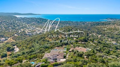 Exclusive To Agnes Malecki Agency - Splendid Sea View for this Very High-End Property Very Bright With Its South Facing and above all very well Built (2001) with high quality materials. Fully air-conditioned villa of approximately 239m2 built on fully landscaped land of 1187m2 which offers on the ground floor: entrance hall with spacious living room in a row of approximately 50m2, fully equipped kitchen with its pantry all opening onto a terrace. Master bedroom opening onto a terrace with bathroom, suspended toilet, dressing room - Interior patio with fountain - Upstairs: Storage room, toilet, 02 bedrooms with shower rooms, solarium. Finished basement with a very large room, pantry, crawl space, boiler room (underfloor heating, hot water, swimming pool) - Outside Heated infinity pool 10 x 5 counter-current swimming, technical room below, outdoor shower, stone wall, numerous terraces on both sides. Garage and carport.. Well-Maintained roofs and gutters, underfloor heating, air conditioning, boiler radiators, gas prim, buried tank, double glazing, mosquito nets, marble, automatic watering, maintained drainage pipes, automatic gate, alarm remote surveillance camera, Home Automation, lots of cupboards and storage. A Breathtaking Sea View From Cap Lardier To The Port Of Cavalaire!