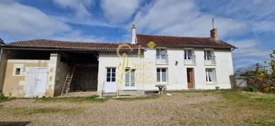 5/7 minutes from Richelieu and all conveniences, we offer this old house of about 110 m2 in a pleasant and very calm setting. It currently features a living room of about 26 m2, a dining kitchen of about 21 m2, and four bedrooms, including one on the ground floor, a shower room, and a large laundry/boiler room. Some outbuildings allow parking for two vehicles, as well as DIY and storage space. The house opens onto a well-secured and well-exposed courtyard as well as a pretty flat, tree-lined plot. We love its countryside location with easy access to conveniences, its bucolic surroundings, and the brightness of the rooms.